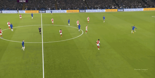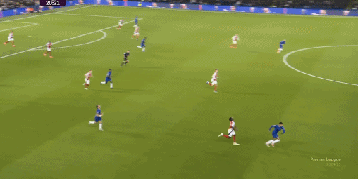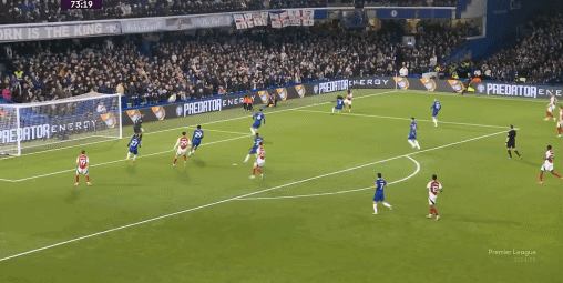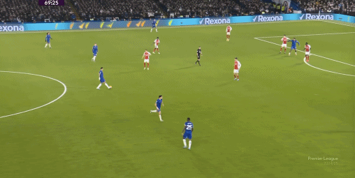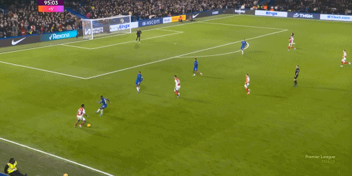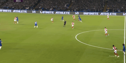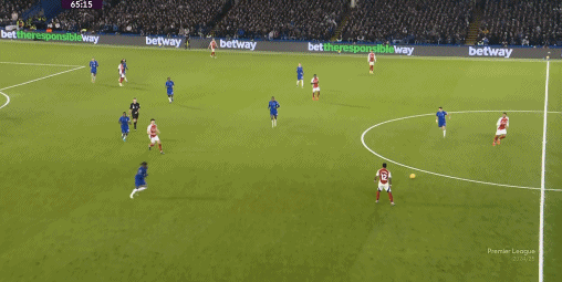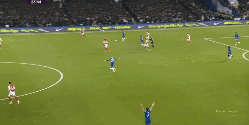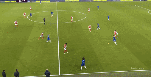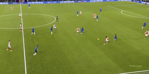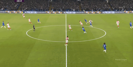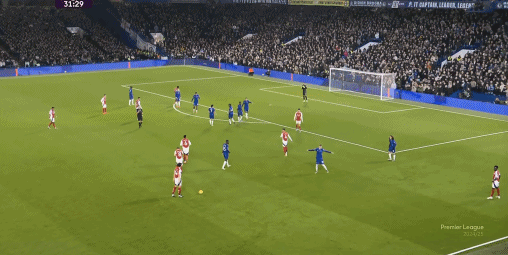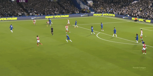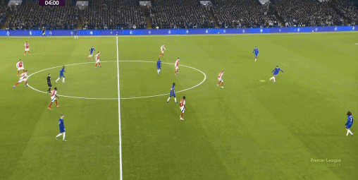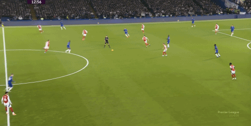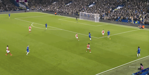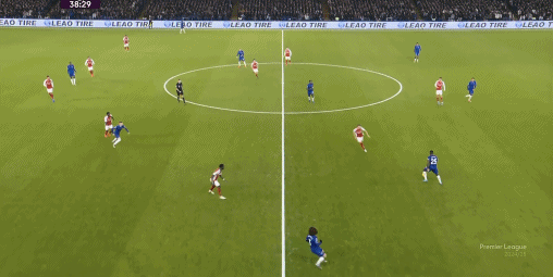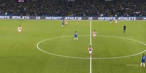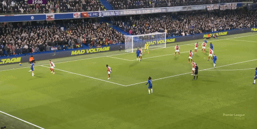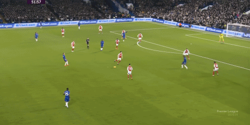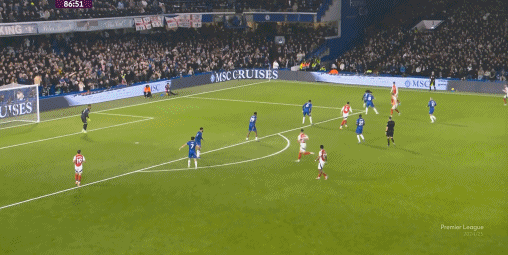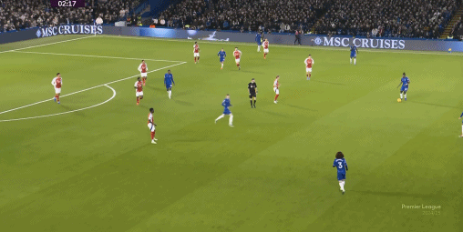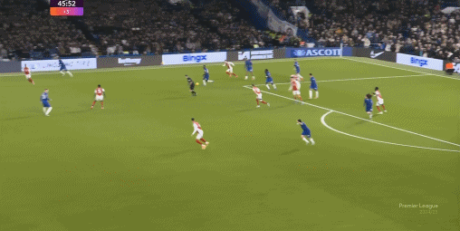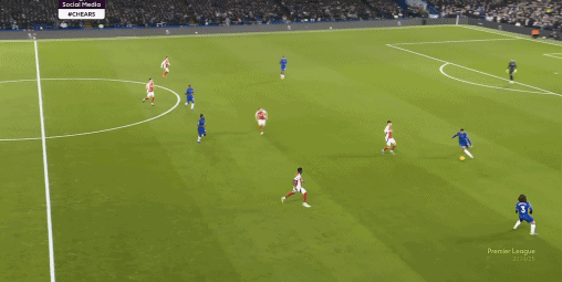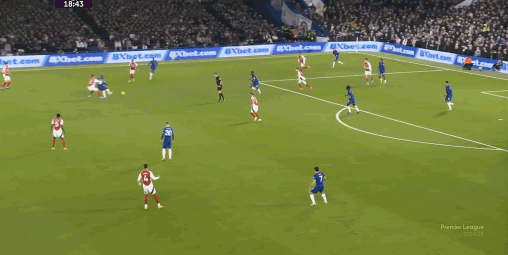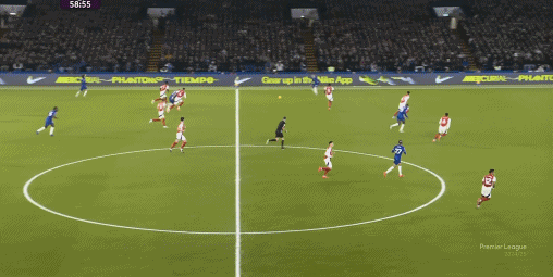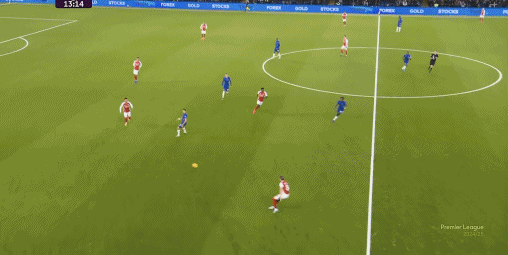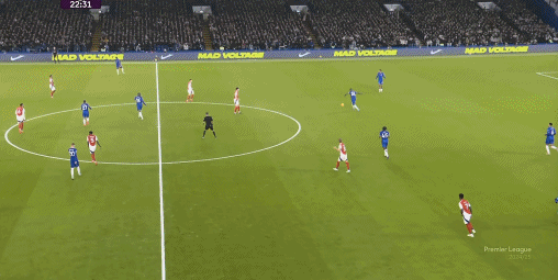 所以在艰难的先行消耗期间,是切尔西不断地利用跑动、穿插和传中在冲击阿森纳的防线: