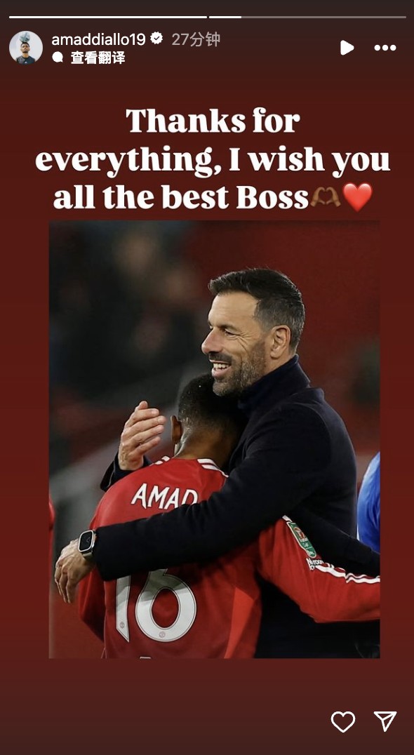 阿马德-迪亚洛写道:“感谢您所做的一切,祝您未来一切顺利,老大。”