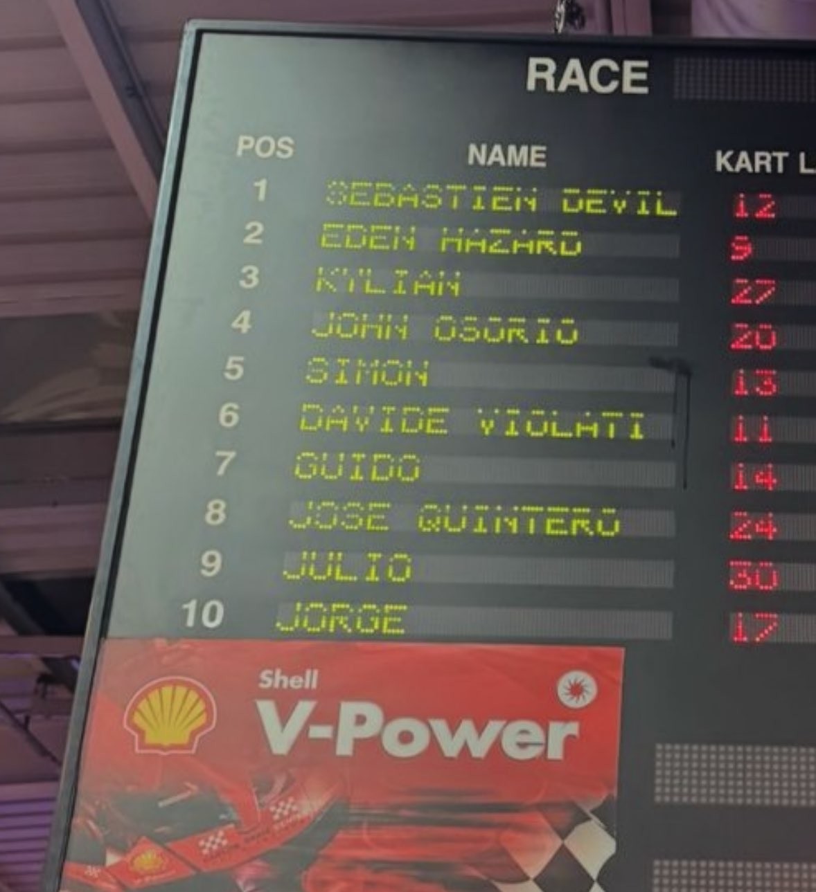 姆巴佩和阿扎尔来到赛恩斯的卡丁车场,分别获得二三名