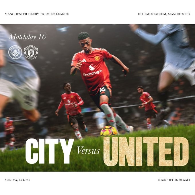 北京时间明天凌晨00:30,曼联将迎来英超第16轮客场对阵曼城的曼市德比,赛前,曼联官方在社交媒体上发布了本场比赛的预热海报。
