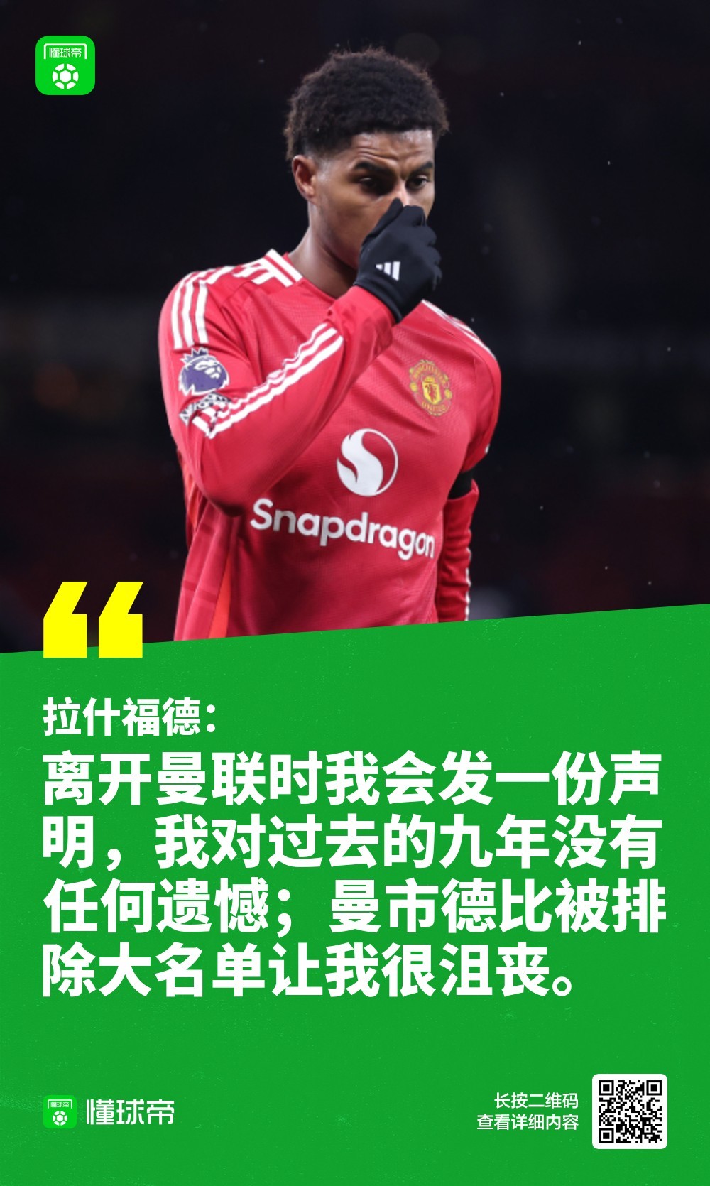 拉什福德在采访中暗示自己将离开曼联,他表示自己“已准备好迎接新的挑战”,他也表示,在周日对阵曼城的德比战中,被主教练阿莫林除名是“令人沮丧的”。