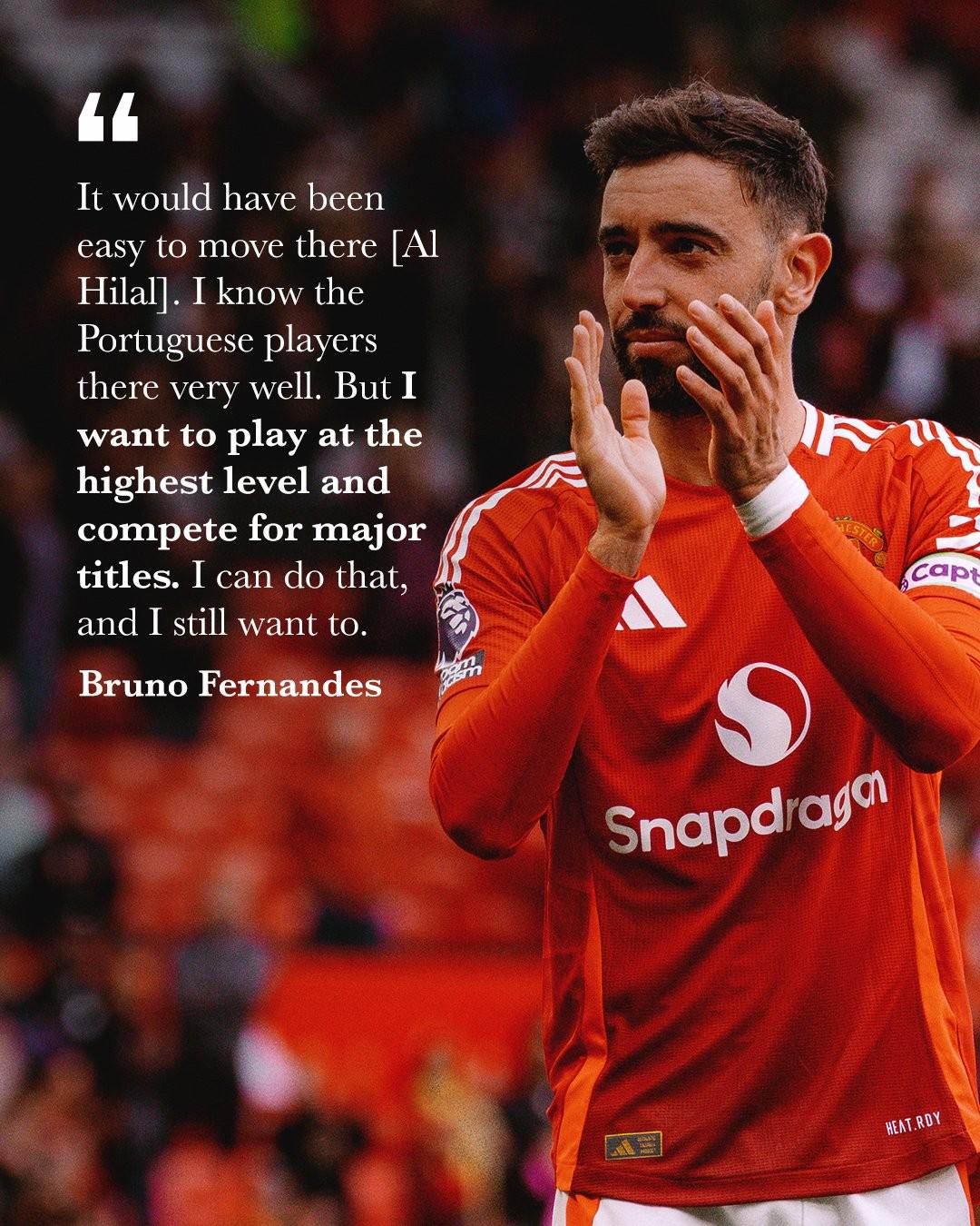 B费在发布会上表示:“确实有过(去沙特的)机会。俱乐部主席给我打电话,问我是否想去那里,他们当时在等我的答复。我和阿莫林谈过,他希望我不要去,曼联也不想卖掉我,他们不需要这笔钱。”