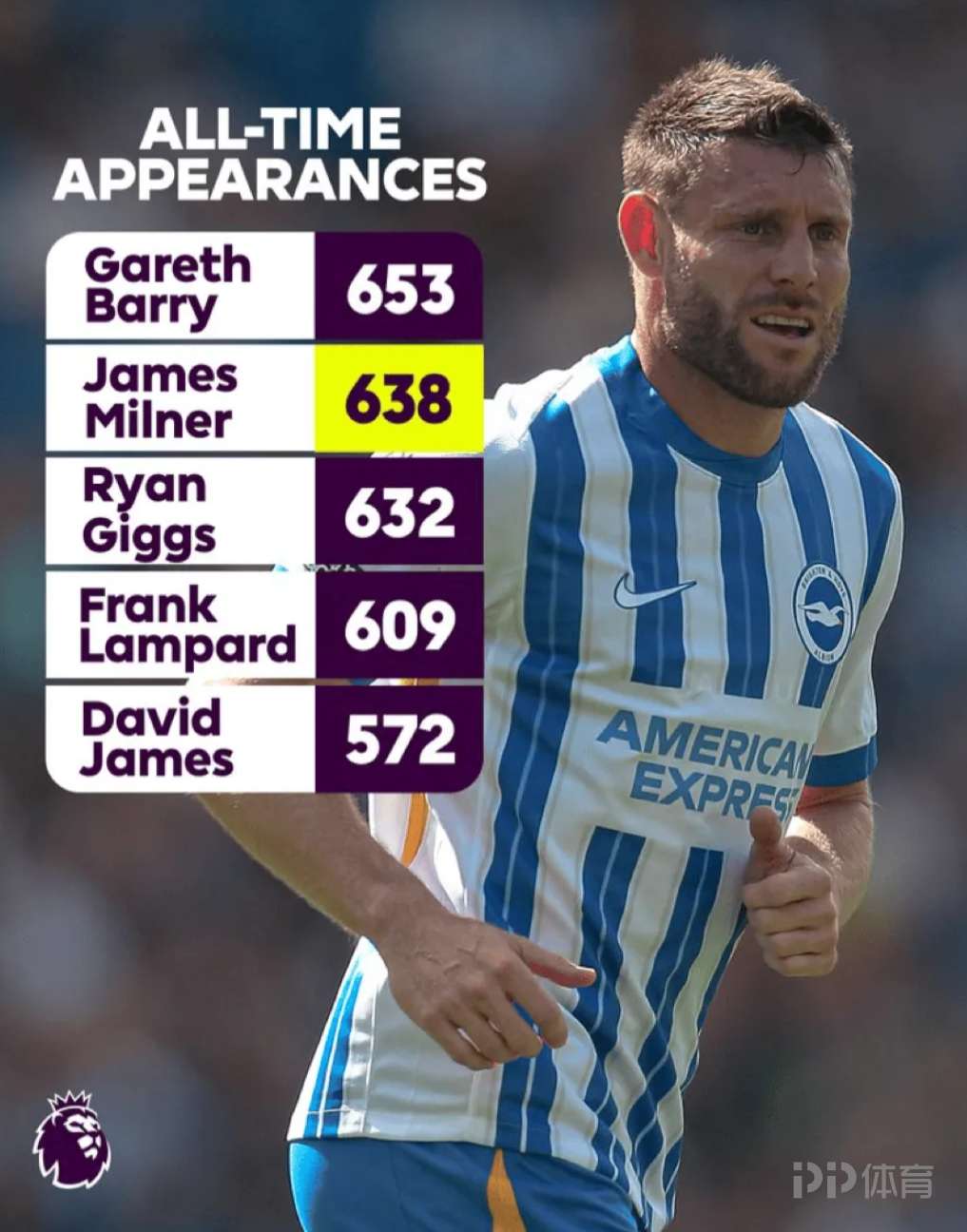 布莱顿官方宣布,与老将米尔纳续约一年。根据英超联赛的官方统计,米尔纳还差15场比赛,就将并列成为该赛事历史出场次数最多的球员。