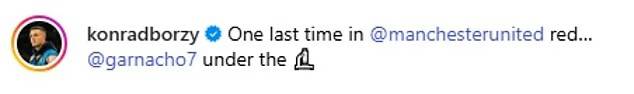 加纳乔的御用摄影师已经确认,这位20岁的阿根廷边锋已经踢完效力曼联的最后一场比赛。摄影师康拉德·博日斯科斯基与许多欧洲球员保持着密切的合作关系,其中就包括曼联的加纳乔、布鲁诺·费尔南德斯等人。这名摄影师在社媒发布了加纳乔上赛季的照片,并且直接加上了一段注释:「最后一次身穿曼联的红色球衣。」
