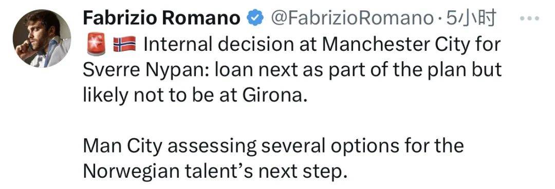 此外,罗马诺表示,曼城内部已就尼潘的未来做出决定,下一步将安排租借,这也是球队计划的一部分,但他很可能不会被租借到赫罗纳。