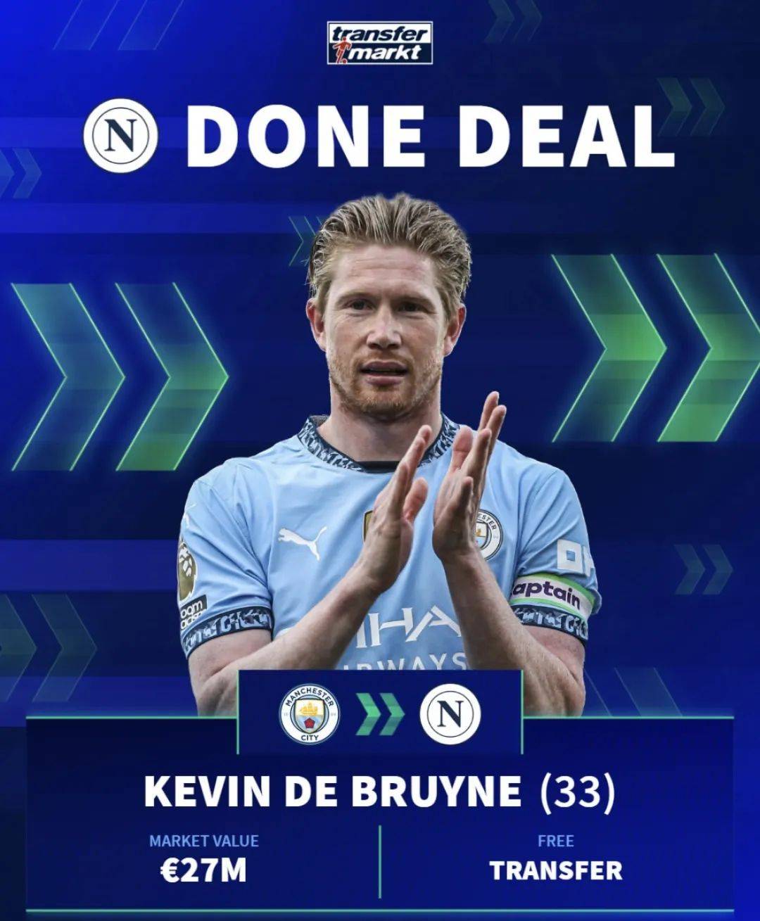 官方:德布劳内加盟那不勒斯