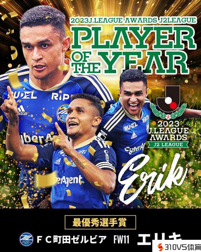 前亚泰外援埃里克中选2023赛季J2联赛MVP,本赛季30场18球6助