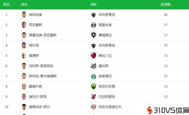自豪!巴甲本赛季最终射手榜出炉:前4名有2位“中超旧将”!