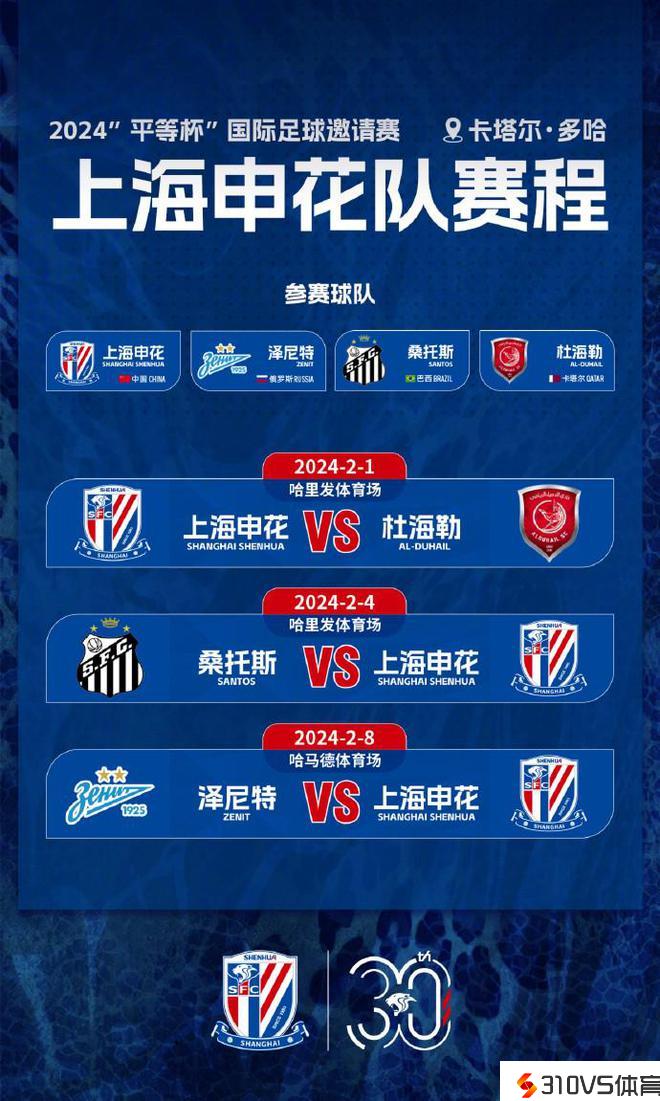 申花官宣热身赛:将在卡塔尔对阵泽尼特、桑托斯和杜海勒