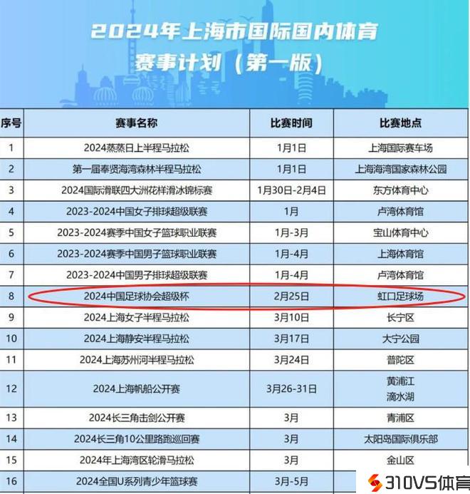上海市体育局:超级杯将落户虹口足球场;中超估量3-11月停止