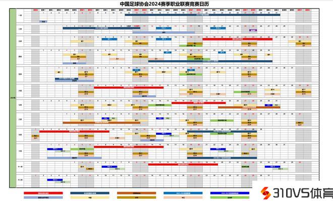 足协在相关公告中写到:为统筹职业联赛、足协杯赛和国度队集训备战布置,中国足协在遵照国际足联和亚足联竞赛日历的前提下,充沛咨询俱乐部和会员协会意见,制造完成2024赛季职业联赛竞赛日历并正式对外发布。中超联赛于3月1日开幕,于11月2日完毕;中甲联赛于3月9日开幕,于11月3日完毕;中乙联赛于3月23日开幕,于10月20日完毕;足协杯赛事于3月15日开赛,于11月23日完毕。足协杯决赛也将是2024赛季的收官之战。