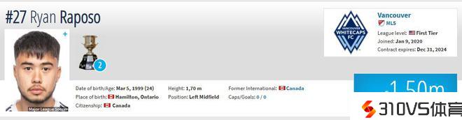 伍小海(英文名Ryan Raposo),1999年3月5日出生,中葡混血,母亲是中国人,父亲葡萄牙人,目前在美国职业足球大联盟中担任温哥华白帽足球俱乐部的边卫,身价150万欧元。