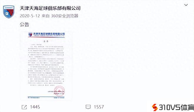 2020年5月12日,天津天海俱乐部(天津权健)正式解散;
