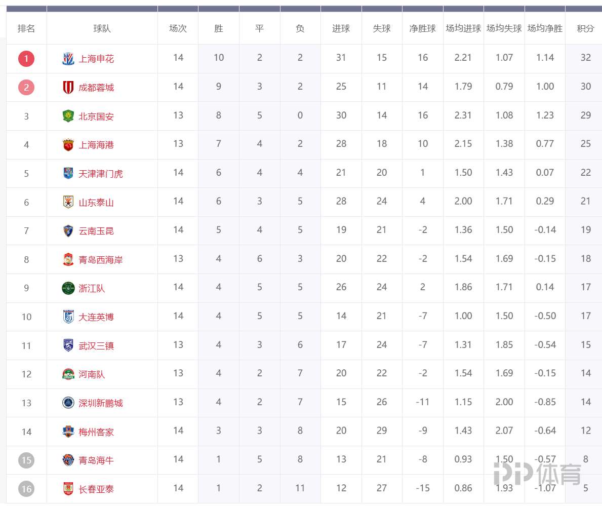 中超第14轮重燃战火,积分榜前二的球队集体刹车。申花1-3深圳吞赛季第二败,蓉城2-3河南遭遇近13场首败。排名第三的国安2-1小胜亚泰,在少赛一场的情况下只落后申花3分。