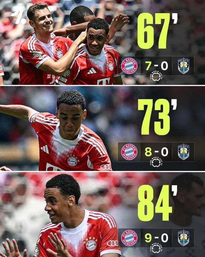 在新世俱杯首轮C组的比赛中,拜仁慕尼黑10-0狂胜奥克兰城,打破了世俱杯单场进球记录和最大分差记录。其中,穆西亚拉替补上演帽子戏法,奥利塞2球2助攻、穆雷2球1助攻、科曼2球1助攻、博埃1球1助攻。而让中国球迷值得关注的是,效力于奥克兰城的中国35岁老将周通此役替补登场表现不俗,他也成为首位亮相新世俱杯的中国球员。