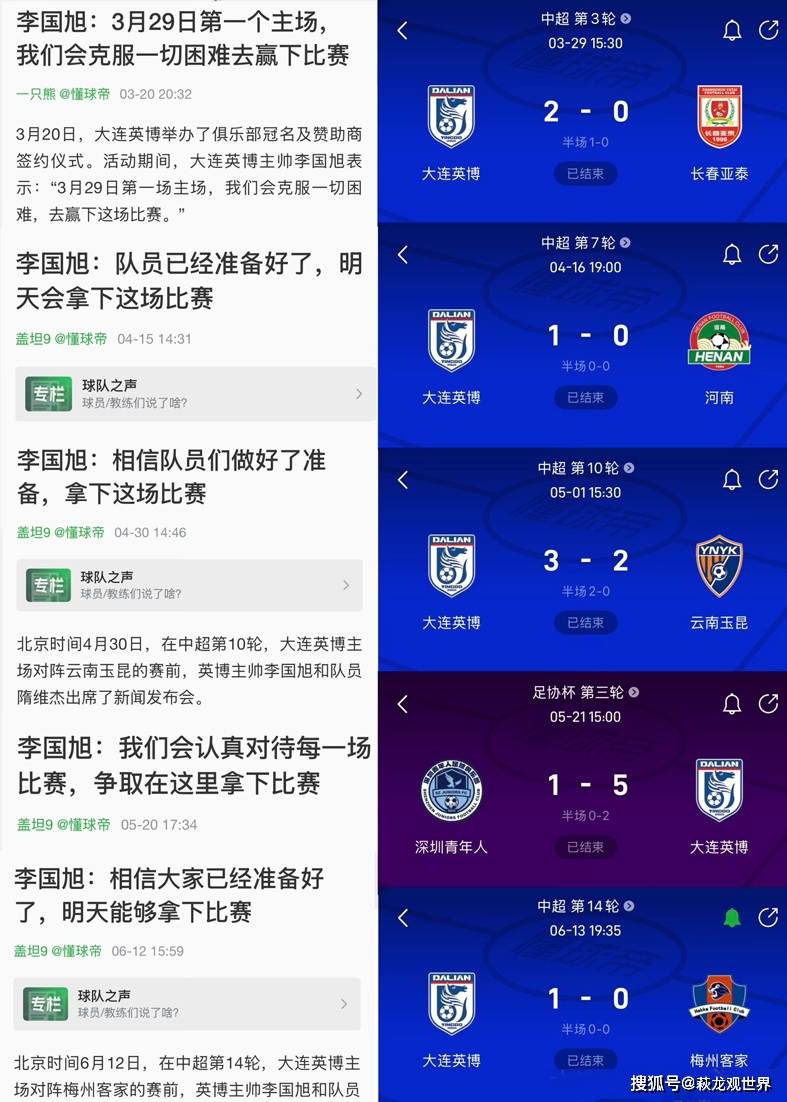 中超联赛首回合,大连英博主场0-2不敌国安,当被问及本场比赛与之前的联赛首回合交手有何不同时,李国旭表示:“肯定会有调整,毕竟是我们近一个月第二次面对国安。那场比赛我们犯的错,需要调整的地方,在这场比赛中都会注意并进行改善。”
